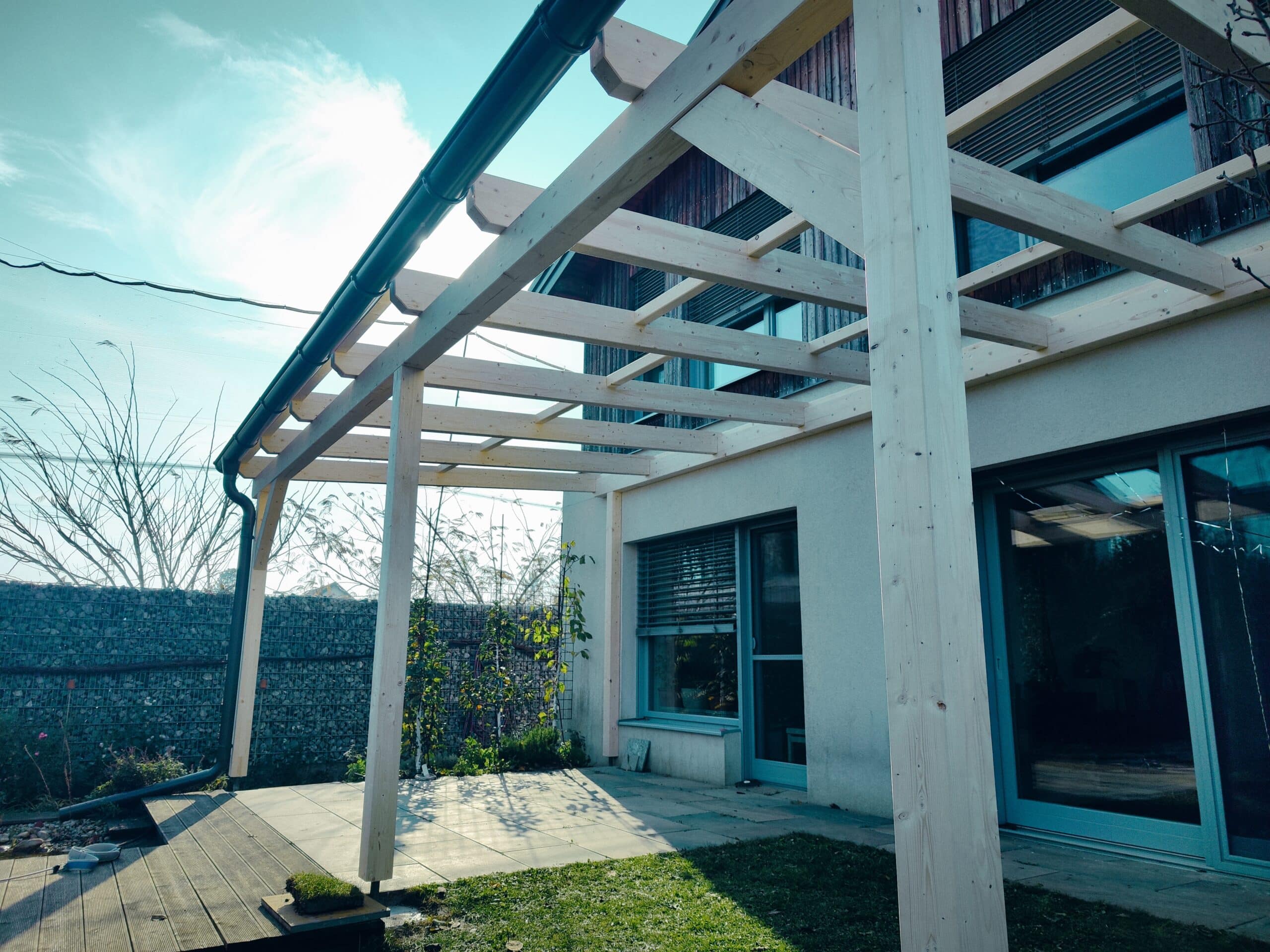Balkonsanierung inkl. neuem Belag und Geländer in Fichte und zweimaliger Lasur.